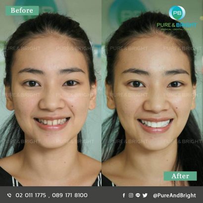 I Brighter kit ฟอกสีฟันที่บ้านI การฟอกสีฟันด้วยตนเองที่บ้าน (Home Bleaching) คือ การฟอกสีฟัน ที่ทันตแพทย์จะทำการพิมพ์ฟัน เพื่อสั่งผลิตถาดฟอก ที่พอดีกับช่องปากของคนไข้ โดยหลังจากนั้นคนไข้นำเจลน้ำยาฟอกสีฟัน บีบใส่ถาดฟอก แล้วใส่กัดนอนตลอดทั้งคืน และถอดทำความสะอาดในตอนเช้า ขั้นตอนการฟอกสีฟันด้วยตัวเองที่บ้าน ทำอย่างไร ? 1. เริ่มจากการไปพบทันตแพทย์เพื่อพิมพ์ปากทำถาดฟอกสีเฉพาะบุคคลของเราเองก่อนค่ะ และคุณหมอจะให้คำแนะนำวิธีการใช้ถาดและน้ำยาฟอกสีฟัน (ตัวถาดฟอกสีฟันนี้เก็บไว้ใช้ได้ตลอดเลยค่ะ พอมีถาดแล้ว ต่อไปหากต้องการทำซ้ำ เราก็ซื้อเฉพาะตัวน้ำยาฟอกสีมาทำด้วยตนเองได้ง่ายๆแล้วค่ะ) ** ก่อนเริ่มฟอกสีฟัน ควรขูดหินปูนและขัดฟันก่อน เพื่อให้ได้ผลลัพธ์ที่ดี แต่ถ้าใครไม่มีหินปูนมาก ไม่มีคราบชากาแฟมาก ก็สามารถเริ่มทำได้เลยค่ะ 2. ก่อนเริ่มต้นฟอกฟันนั้นควรแปรงฟันให้สะอาด และถาดฟอกสีฟันควรแห้งสนิท 3. ให้บีบดันน้ำยาฟอกสีฟันออกไปเป็นจุดเล็กๆเท่าเม็ดถั่วเขียว…